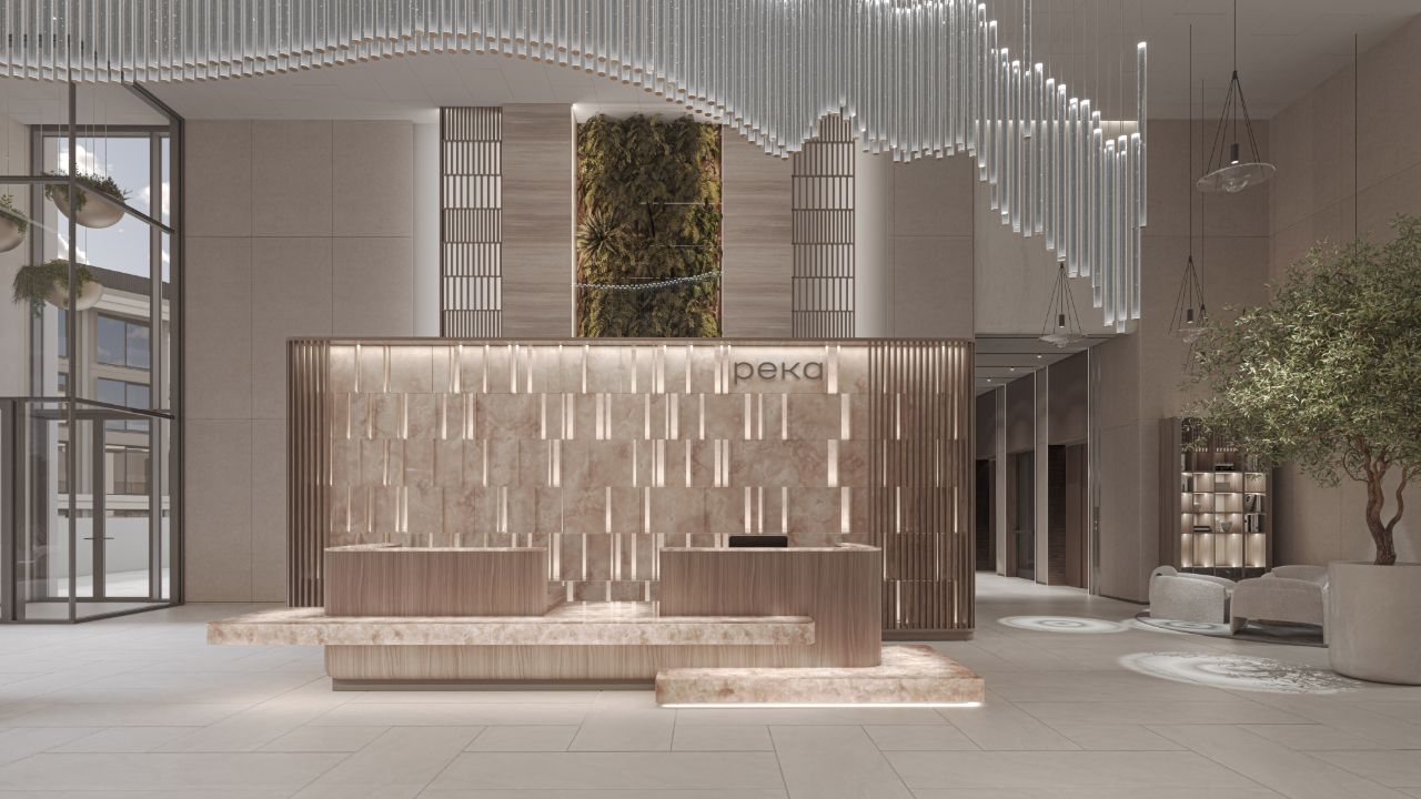 РЕКА — клубный дом переменной высотности от 9 до 12 этажей. Фасад дома в стиле «современная классика» облицован натуральным камнем и с первого взгляда впечатляет элегантной солидностью. В парадном лобби — потолки до 9,9 м, панорамное остекление «в пол», дизайнерские интерьеры и детский клуб. Архитектурная концепция дома создана известным московским архитектором Павлом Андреевым специально для РЕКИ: большинство окон обращено на парк.